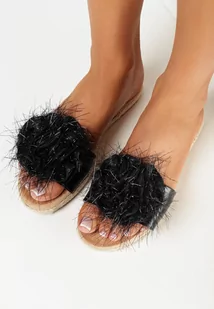 Czarne Klapki na Plecionej Podeszwie z Ozdobnym Paskiem z Metaliczną Nitką Cavilia