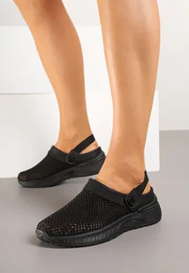 Czarne Klapki z Ażurową Cholewką i Paskiem Podtrzymującym Piętę Fenrisa
