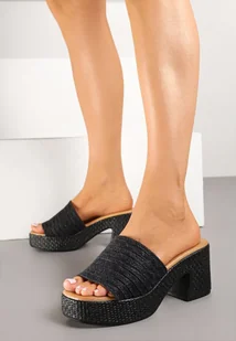Czarne Klapki z Plecionki na Geometrycznym Słupku Rosadora
