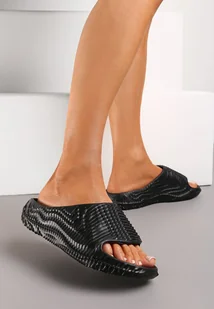 Czarne Piankowe Klapki z Ozdobnym Tłoczeniem Juraia