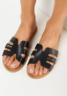 Czarne Płaskie Klapki z Paskiem Ozdobionym Wycięciami Linvin