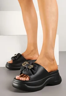 Czarne Wsuwane Klapki z Ozdobną Kokardką Morlia