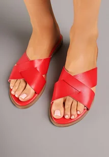 Czerwone Płaskie Klapki z Dwoma Paskami Alfonia