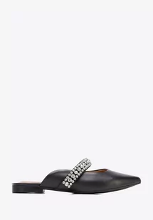 Damskie klapki skórzane z błyszczącym paskiem czarne 35
