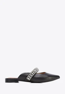 Damskie klapki skórzane z błyszczącym paskiem czarne 37