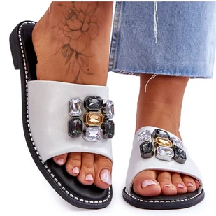 Damskie Klapki Z Kamieniami S. Barski KV-2775-31 Biało-Srebrne białe. Sprawdź na butymodne. pl! Klapki damskie marki S. Barski połączenie wygody i elegancji w świetnej cenie.