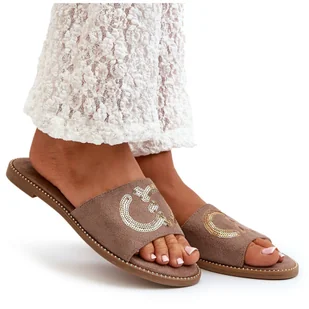 Damskie Płaskie Klapki Z Cekinami S. Barski KV27-052 Brązowe. Sprawdź na butymodne. pl! Klapki damskie marki S. Barski połączenie wygody i elegancji w świetnej cenie.