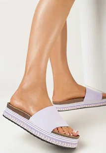 Fioletowe Klapki na Ozdobnej Podeszwie i Szerokim Paskiem Sammia - Born2be