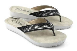 Klapki japonki damskie letnie Inblu czarne z cyrkoniami ZO-01-36