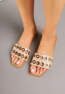 Jasnobeżowe Klapki Ozdobione Nitami Meralina