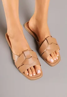 Jasnobrązowe Klapki z Geometrycznymi Paskami Orrile