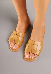 Jasnobrązowe Klapki z Ozdobnymi Paskami Pollaloria