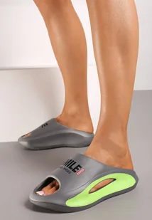 Jasnoszare Płaskie Klapki z Lekkiej Pianki i Ozdobnym Napisem Tesolen