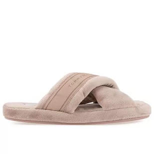 Kapcie damskie Tommy Hilfiger Comfy Home Slippers With Straps FW0FW06587-AE9 – beżowe Damskie kapcie Tommy Hilfiger Comfy Home Slippers With Straps. Te komfortowe kapcie Tommy Hilfiger stanowią połączenie codziennej elegancji i niezrównanej wygody. Zostały wykonane z miłej w dotyku, pluszowej tkaniny, która otuli Twoje zmęczone po całym dniu stopy i pozwoli Ci się zrelaksować w domowym zaciszu. Krzyżujące się paski z sygnaturą producenta doskonale leżą przytrzymując stopę, a co więcej – doskonale wyglądają. Gruba i płaska podeszwa jest miękka, wygodna i odpowiednio zamortyzuje każdy krok.