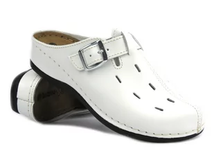 Białe klapki skórzane damskie Inblu sanitarne medyczne z klamrą ZZ9996PF