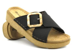 Klapki damskie na platformie czarne skórzana wkładka Inblu ED-15-36