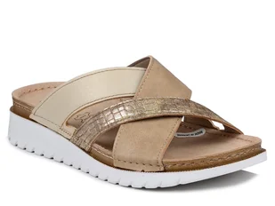 Klapki damskie skórzane regulowane wygodne beżowe Inblu PF-03-37