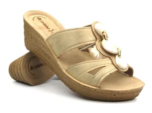 Klapki damskie na koturnie - Inblu GM-52, piaskowy