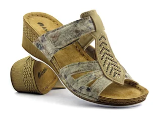 Klapki damskie beżowe regulowane skórzana wkładka Inblu CP-45-36