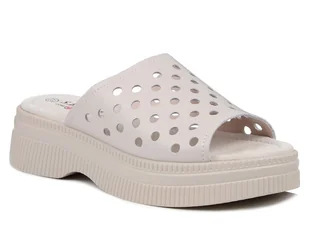 Klapki damskie na platformie S.Barski LR51-537 beżowe skórzane ażurowe-40