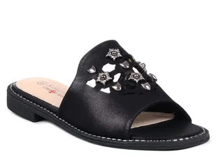 Klapki damskie płaskie czarne skórzana wkładka S.Barski KV27-063-36