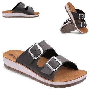 Klapki damskie skórzana wkładka regulowane Inblu IN-CP-42-014 Czarne 38 Wygodna piankowa podeszwa wspiera Twoje stopy, zapobiegając ich zmęczeniu nawet po ca...