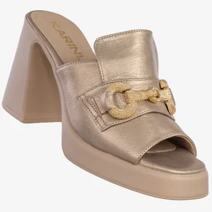Złote klapki Karino 4984/074-P to połączenie luksusu, wygody i kobiecego szyku – stworzone, by błyszczeć w każdej stylizacji. Te skórzane klapki na słupku za...