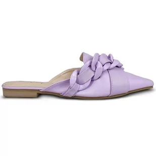 Klapki Damskie Z Łańcuchem Eleganckie Modne Stylowe Lekkie Na Płaskim Obcasie Wygodne Skórzane Na Lato Letnie Z Noskiem W Szpic Fioletowe 38