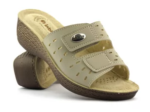 Klapki damskie beżowe regulowane skórzana wkładka Inblu CP-45-36
