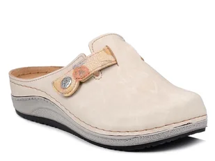 Klapki damskie zakryte palce wygodne skórzana wkładka beżowe Inblu PF-04-37