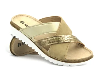 Klapki damskie ze skórzaną wkładką - Inblu CN-40, piaskowy