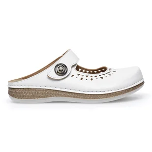 Białe klapki skórzane damskie Inblu sanitarne medyczne z klamrą ZZ9996PF