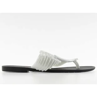 Klapki japonki- meliski, wykonane z wyjątkowo miękkiej i aksamitnej w dotyku silikonowej gumy. Mają oryginalny wzór serca i skrzydeł, który dodaje im niepowtarzalnego wyglądu. Świetnie trzymają się stopy i są bardzo wygodne. Klapki meliski Flying heart KM116 BLACK/SILVER białe. Sprawdź na butymodne.