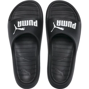 Klapki Puma Divecat v2 Puma czarne 369400 01. . Klapki marki Puma to model o uniwersalnym zastosowaniu. Wyprofilowana konstrukcja z pianką EVA. Podeszwa zewnętrzna z specjalnymi wyżłobieniami. Design z kontrastowym logo.