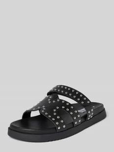 Klapki damskie STEVE MADDEN;Skóra naturalna;Zaokrąglony kształt;Model ‘MISSILE’;Ozdobne nity;Profilowana podeszwa;Wysokość obcasa w rozmiarze 40: 3 cm