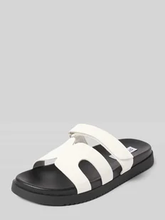 Klapki skórzane damskie STEVE MADDEN;Skóra naturalna;Zaokrąglony kształt;Model ‘MISSILE’;Szerokie paski;Rzep;Fakturowana podeszwa;Wysokość obcasa w rozmiarze 40: 3 cm