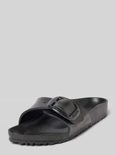 Klapki damskie Birkenstock;Zaokrąglony kształt;Szeroki pasek ze sprzączką;Model ‘Madrid’;Fakturowana podeszwa;Wysokość obcasa w rozmiarze 40: 3 cm