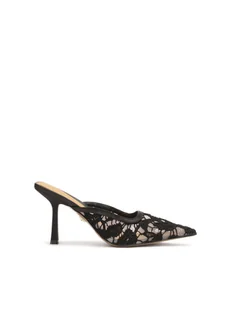 Eleganckie klapki na obcasie to wyrafinowane połączenie nowoczesności z klasycznym urokiem. Model ten wyróżnia się zabudowanymi, spiczastymi noskami, które dodają butom elegancji, wysmuklają stopę i nadają im wyrazistego charakteru. Cholewka wykonana z czarnej, ażurowej koronki zachwyca subtelnością i finezyjnym wzorem, wprowadzając do stylizacji nutę luksusowej delikatności. Ich wieczorowy charakter doskonale komponuje się z formalnymi i szykownymi kreacjami. Kwadratowe pięty to nowoczesny akcent, który zapewnia stabilność i komfort podczas noszenia, jednocześnie dodając obuwiu współczesnego stylu. Wysokość obcasa optycznie wysmukla sylwetkę, dodając kobiecej gracji i pewności siebie. Prezentowane klapki to idealny wybór dla kobiet ceniących oryginalność, elegancję i precyzję wykonania. Stanowią doskonałe dopełnienie wieczorowych stylizacji, przyciągając uwagę swoim niepowtarzalnym designem i wyrafinowaną estetyką.