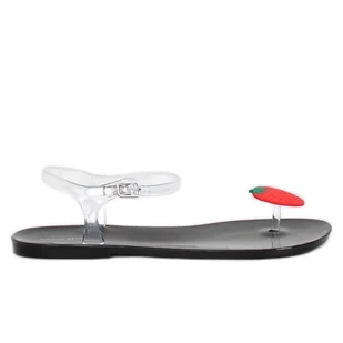 Słodkie sandałki damskie o kroju japonek. Dzięki tym uroczym butom z ozdobnymi owocami zrobisz na wszystkich wrażenie i dodasz sobie dawki energii! Model w najmodniejszym gumowym wykończeniu zapewni wygodę podczas codziennych spacerów. Gotowa na odrobinę letniego szaleństwa? : ) Materiał zewnętrzny - guma. Meliski japonki czarne K-3700 Black wielokolorowe.