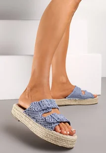 Niebieskie Klapki na Grubej Podeszwie z Ozdobną Plecionką i Klamrami Sariga