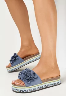 Niebieskie Klapki na Plecionej Platformie Tynleigh
