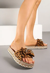 Panterkowe Klapki na Grubej Podeszwie Zdobione Kokardą z Metalicznymi Aplikacjami Tenalenea