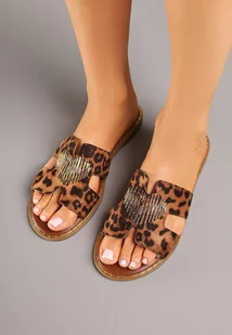Panterkowe Klapki na Płaskiej Podeszwie z Aplikacją w Kształcie Serca Redesia