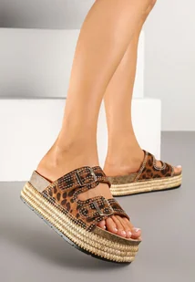 Panterkowe Klapki z Paskami z Klamrami na Platformie z Plecionki Ulrivae