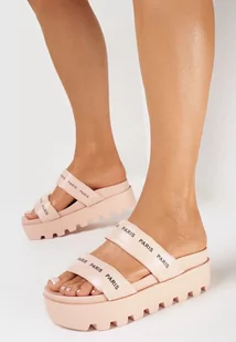 Różowe Klapki na Grubej Podeszwie z Paskami z Napisami Nilenia