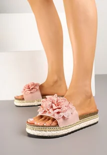 Różowe Klapki na Plecionej Podeszwie Zdobione Kwiatową Aplikacją Kinisea