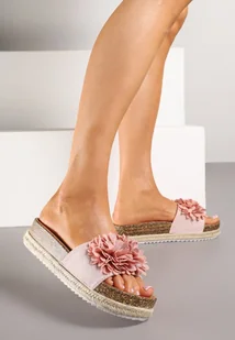 Różowe Klapki Zdobione Aplikacją z Imitacją Kwiatów Felurea