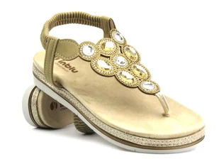 Sandały, japonki damskie z gumką- INBLU SA-45, piaskowe - Inblu