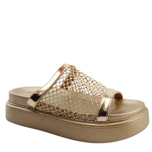 Płeć: Damskie, Kolor: Złoty, Materiał: Skóra ekologiczna, Rodzaj zapięcia: Wsuwane, Dodatkowe informacje: Ażurowe, Stan: Nowy
