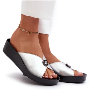 Skórzane Klapki Damskie Z Ozdobą Srebrne S. Barski KV27-027 srebrny. Sprawdź na butymodne. pl! Klapki damskie marki S. Barski połączenie wygody i elegancji w świetnej cenie.